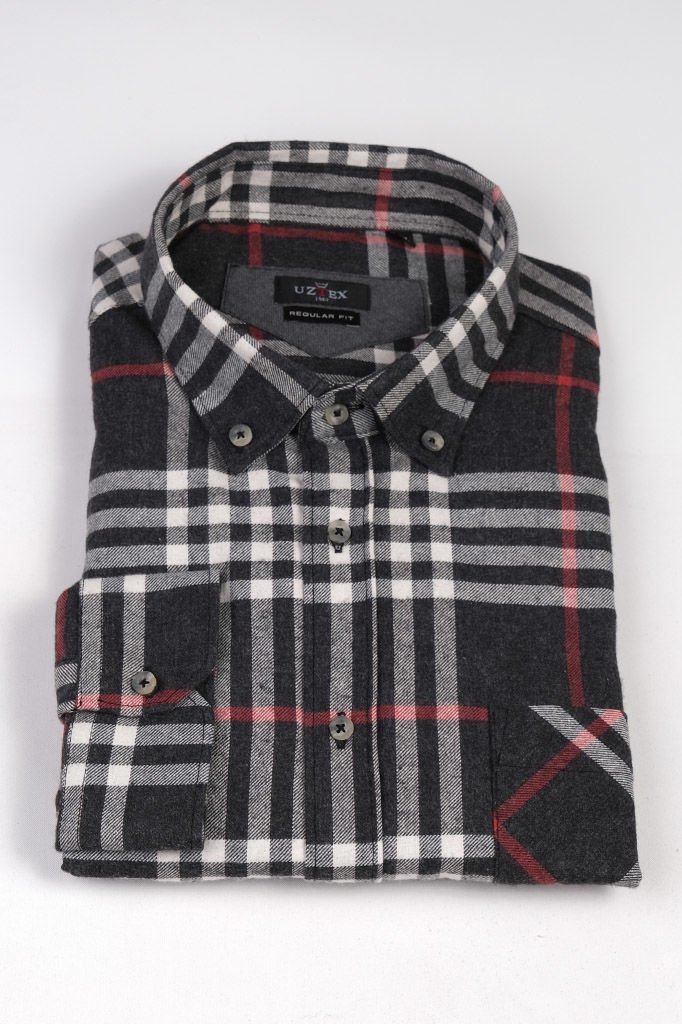 2151 MELANJ EKOSE BÜYÜK BEDEN KIŞLIK ANTRASİT GÖMLEK