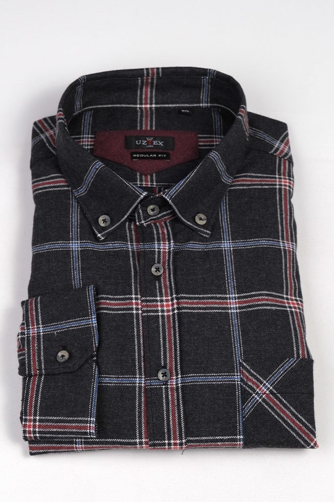 2151 MELANJ EKOSE BÜYÜK BEDEN KIŞLIK ANTRASİT GÖMLEK