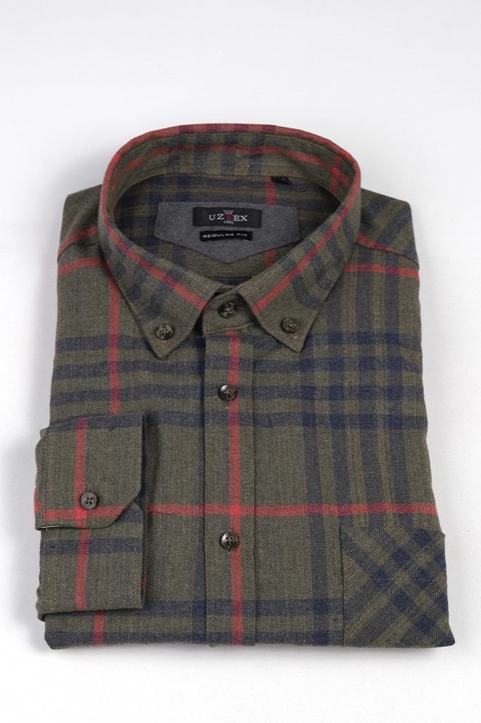2151 MELANJ EKOSE BÜYÜK BEDEN KIŞLIK HAKİ GÖMLEK