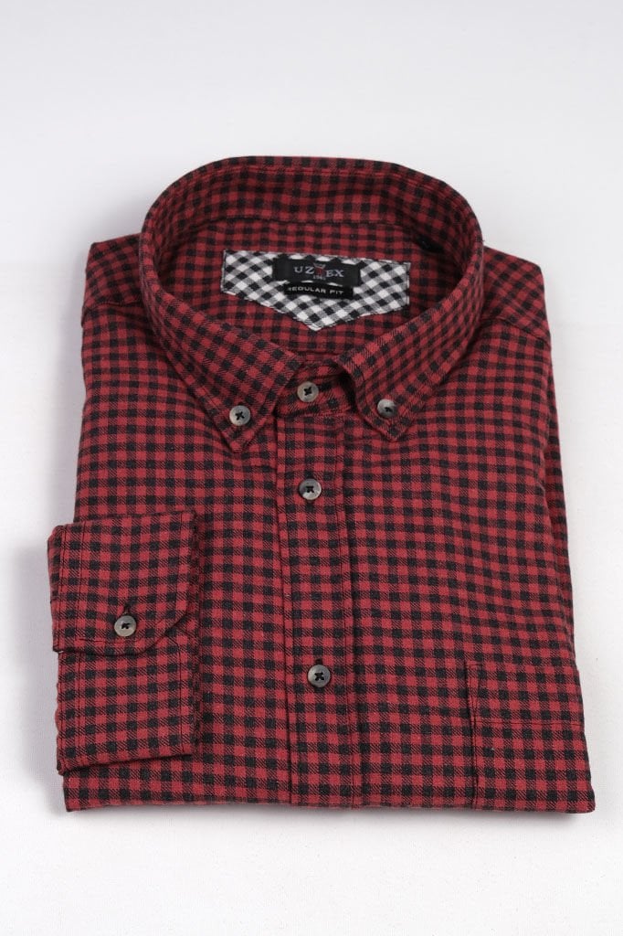 2151 MELANJ EKOSE BÜYÜK BEDEN KIŞLIK KIRMIZI GÖMLEK