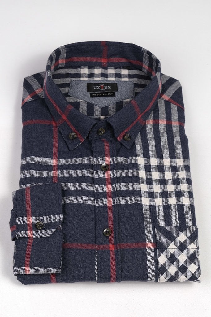 2151 MELANJ EKOSE BÜYÜK BEDEN KIŞLIK LACİVERT GÖMLEK