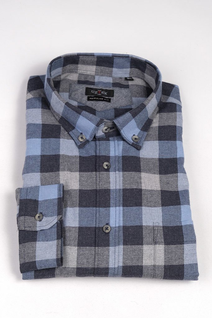 2151 MELANJ EKOSE BÜYÜK BEDEN KIŞLIK LACİVERT/MAVİ GÖMLEK