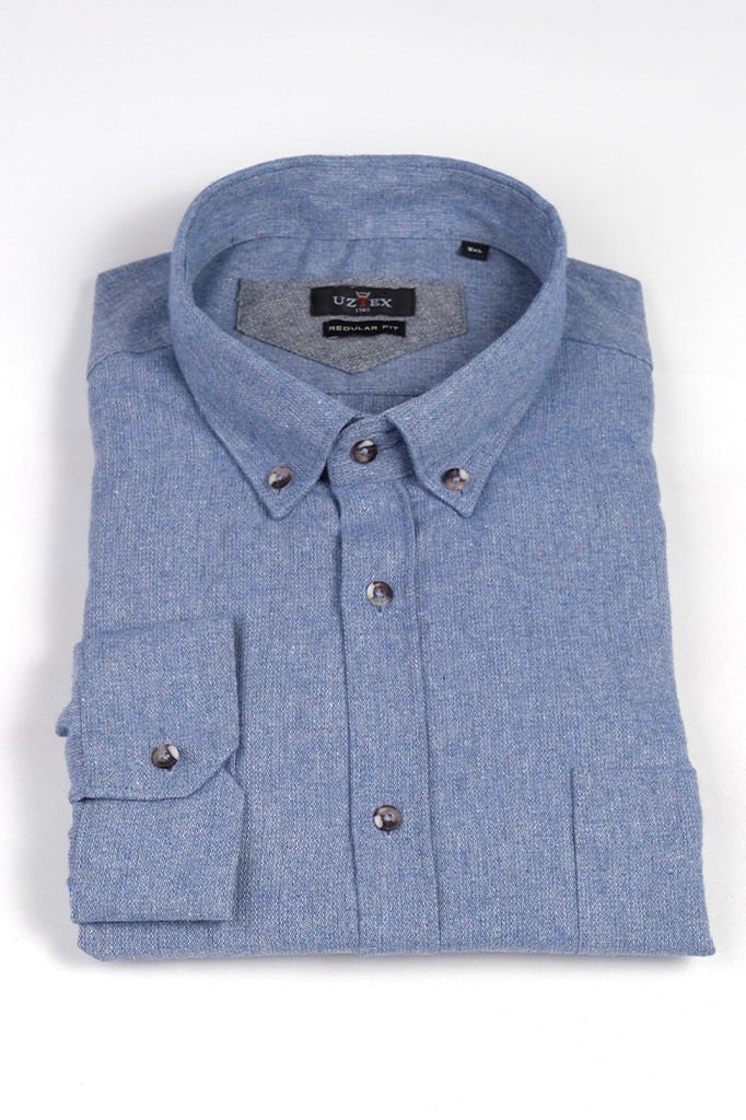 2153 MELANJ DİMİ BÜYÜK BEDEN KIŞLIK SAKS GÖMLEK
