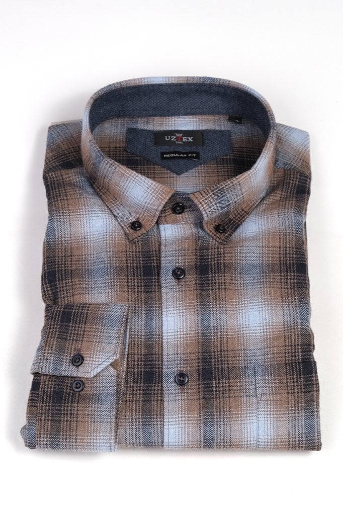 2195 BALIKSIRTI MELANJ EKOSE BÜYÜK BEDEN KIŞLIK BEJ GÖMLEK