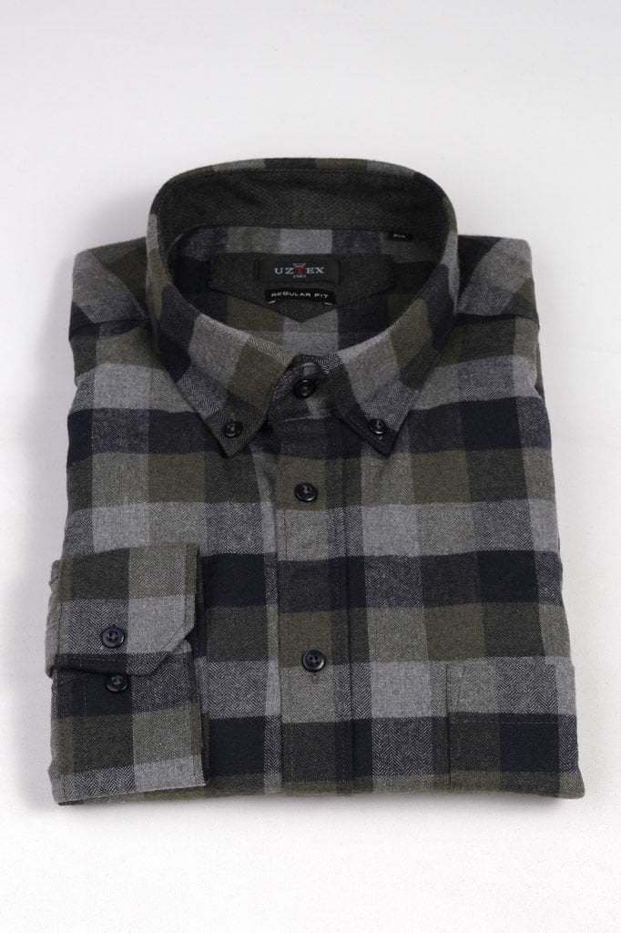 2195 BALIKSIRTI MELANJ EKOSE BÜYÜK BEDEN KIŞLIK HAKİ GÖMLEK