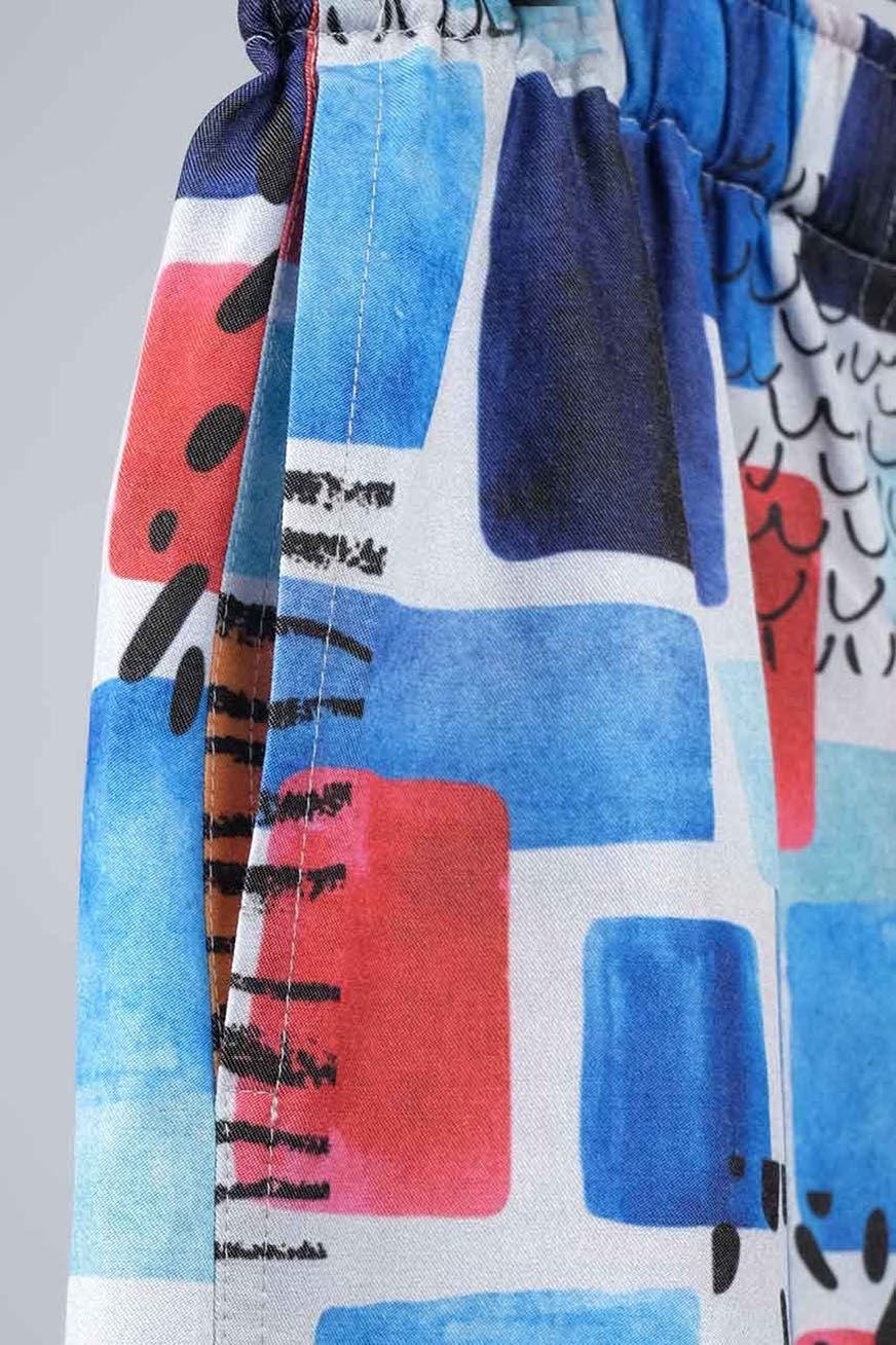 Positano Set Women's Tie-front Shirt w/ Ornament Tile Print Beach Pants - Multi-color