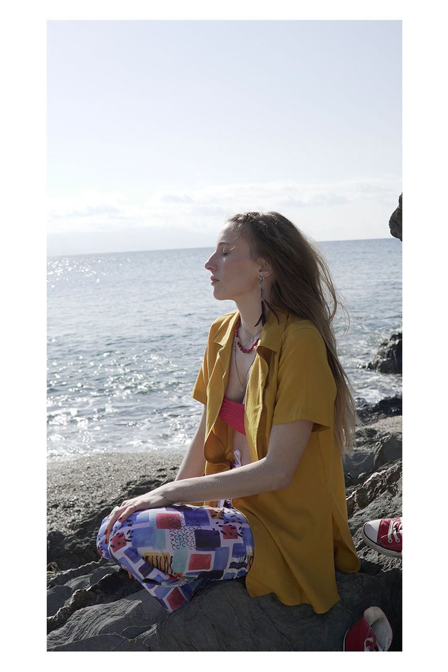 Fashion on the Amalfi Coast was first discovered after the War when travelers ranging from well-heeled jetsetters to hitchhiker hippies started to visit Positano. Italy's legendary village now transformed into one of world's trendiest destinations. Designed to be worn in multiple ways our Positano Set of a high-slit viscose shirt with ornament tiles printed pants will be your ultimate high-sea vacation combination that can take you from the beach to the boat (and beyond). Tie-it up, tuck it in or just loosen it up... Wear it the way you feel it!
