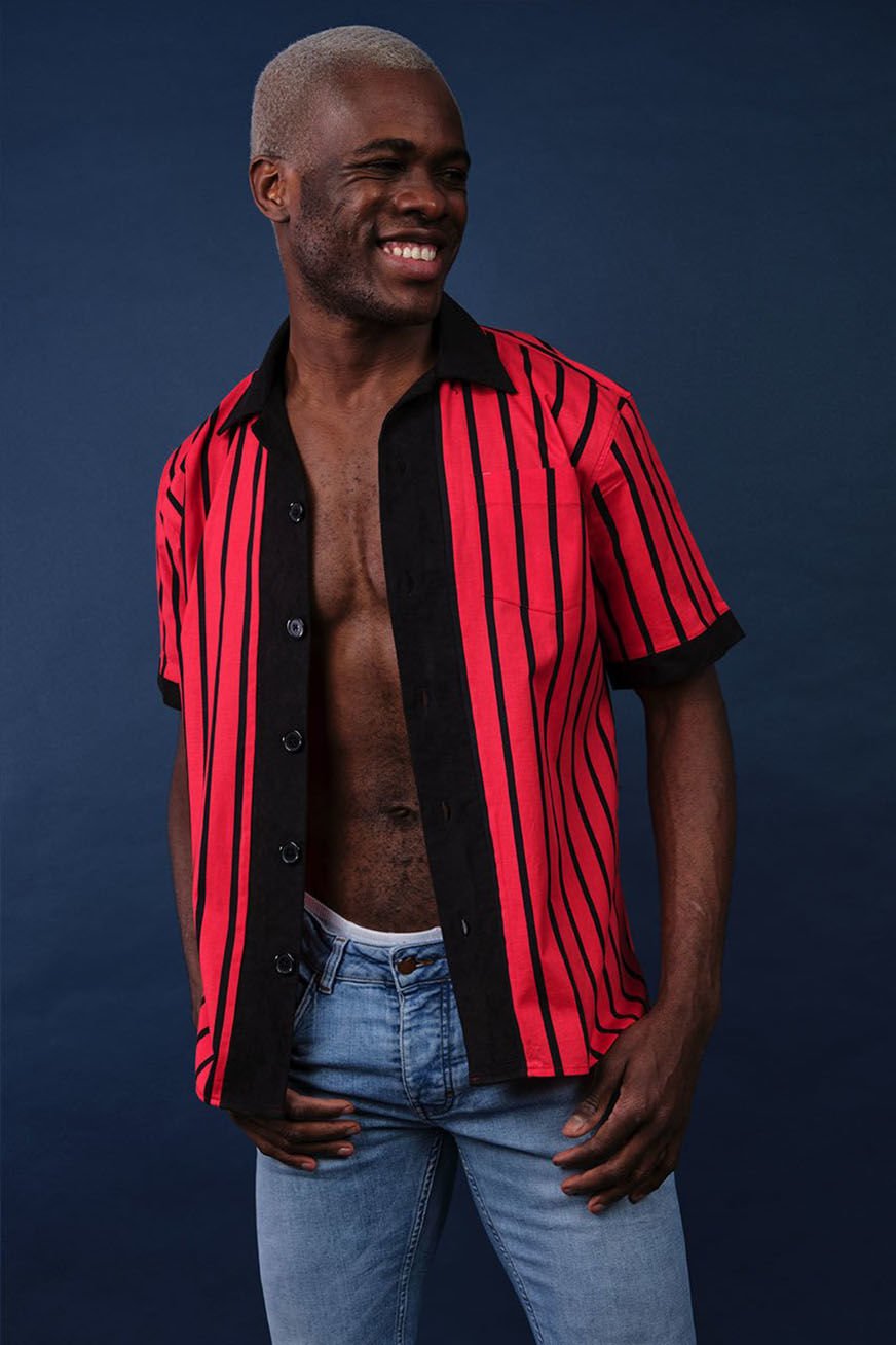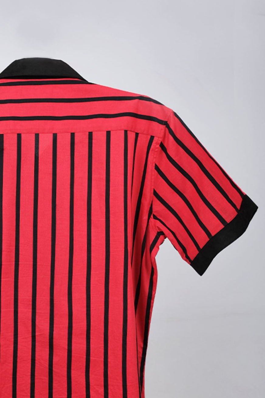Stingray Men's Cuban Collar King Striped Shirt w/ Faux Suede - Red & Black